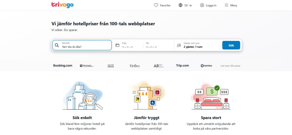 Trivago är världsledande inom hotelljämförelse och hjälper miljoner resenärer att hitta de bästa hotellerbjudandena varje dag. Med ett enkelt och intuitivt gränssnitt, låter Trivago användare söka och jämföra priser från hundratals bokningssajter, vilket säkerställer att de alltid får det bästa priset. Trivago erbjuder detaljerad information om varje hotell, inklusive recensioner, bilder och faciliteter, vilket gör det enkelt att hitta det perfekta boendet. Oavsett om du letar efter ett lyxhotell, ett budgetalternativ eller något däremellan, kan Trivago hjälpa dig att hitta precis vad du behöver.