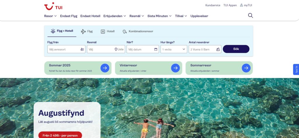 Tui är ett välkänt namn inom resebranschen och erbjuder ett brett spektrum av semesterpaket för alla typer av resenärer. Med fokus på att leverera högkvalitativa upplevelser, samarbetar Tui med några av världens bästa hotell och flygbolag. Tui erbjuder allt från all inclusive-semester till spännande äventyrsresor och familjevänliga alternativ. Med deras enkla bokningsprocess och dedikerade kundservice, kan du vara säker på att din semester är i goda händer. Tui strävar efter att göra varje resa unik och minnesvärd genom att erbjuda skräddarsydda paket som passar dina behov och önskemål.
